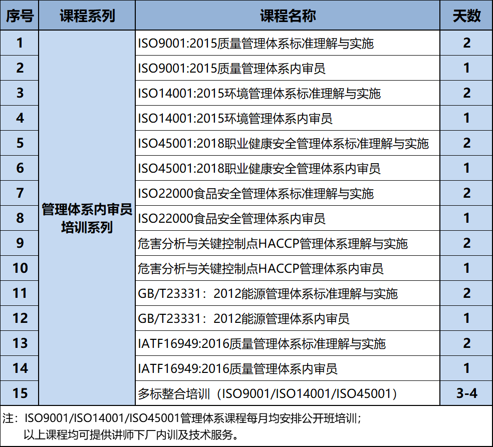 管理體系內審員培訓課程